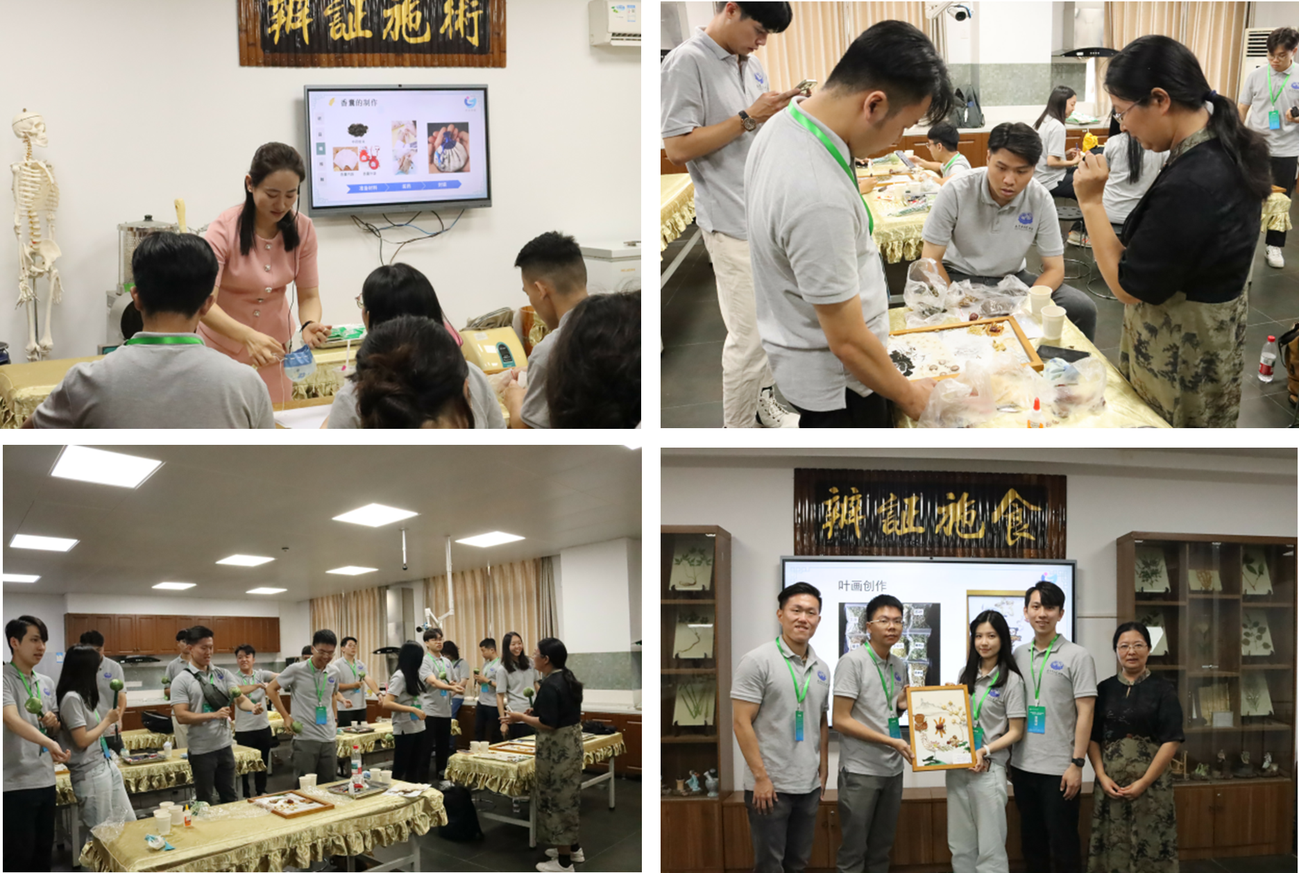 活动现场互动热烈,师生双方在共同制作香囊、协作完成叶画、同步练习拍打操的过程中,不仅深化了专业知识,更增进了情感联结。当学生把“酸梅汤”“紫苏饮”贴上 Ins、把亲手制作的中药香囊悬挂于书包,中医药文化已悄然完成一次跨越海峡的“青春表达”。