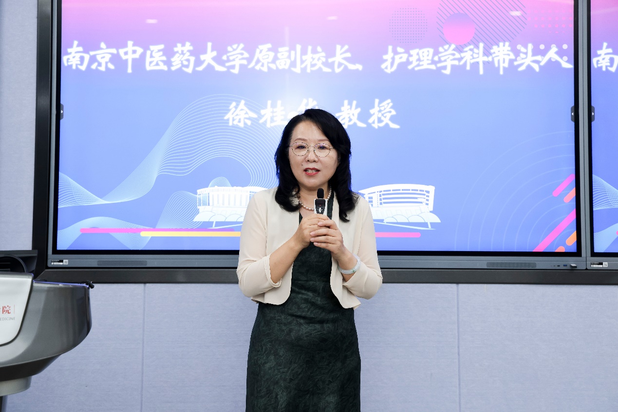徐桂华介绍了我校护理学科发展历程和建设成效、“揭榜挂帅”项目的实施背景与目标。她指出,项目以“争创一流、提质增效、创新发展”为导向,通过“护理+”多学科交叉融合,汇聚优势力量,着力解决护理学科发展中的瓶颈问题,为推进护理事业高质量发展注入新动能。