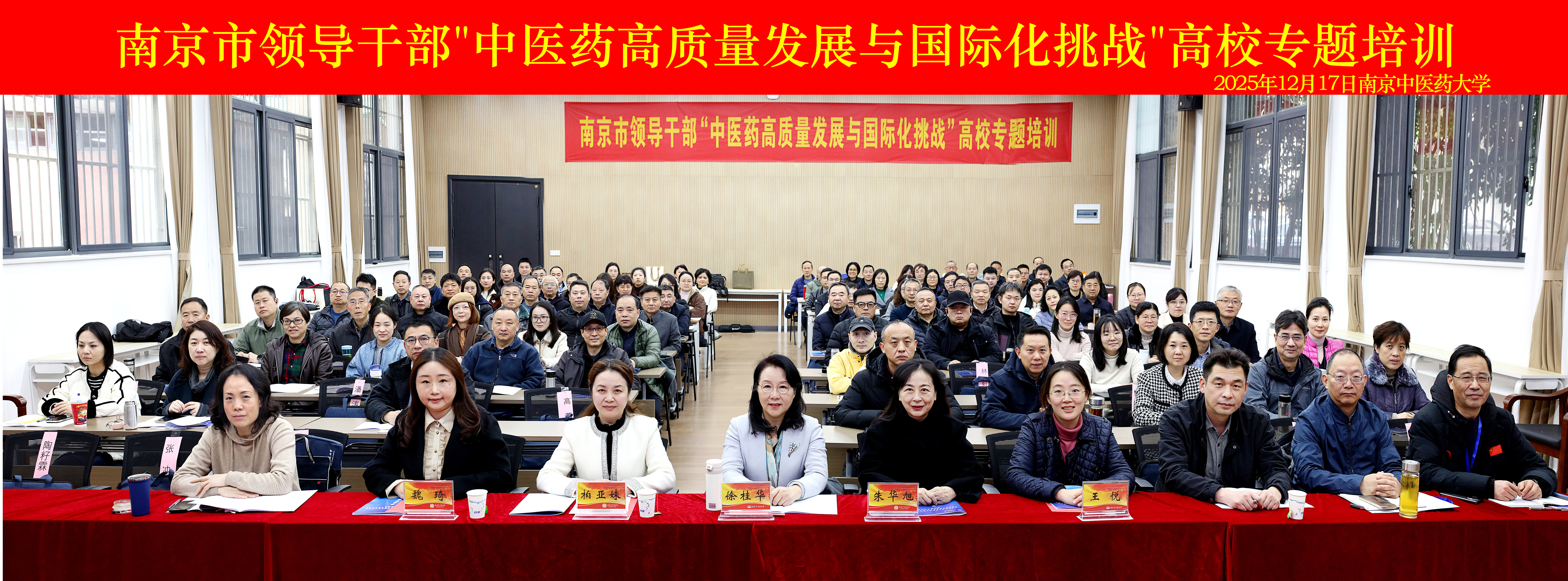 为推动中医药事业高质量发展,提升干部队伍专业素养,12月17日至20日,“中医药高质量发展与国际化挑战”专题培训班在南京顺利举行。本次培训由南京市委组织部主办、南京中医药大学护理学院承办,共吸引全市机关、企事业单位、区(园区)处级及以上领导干部104人参加。