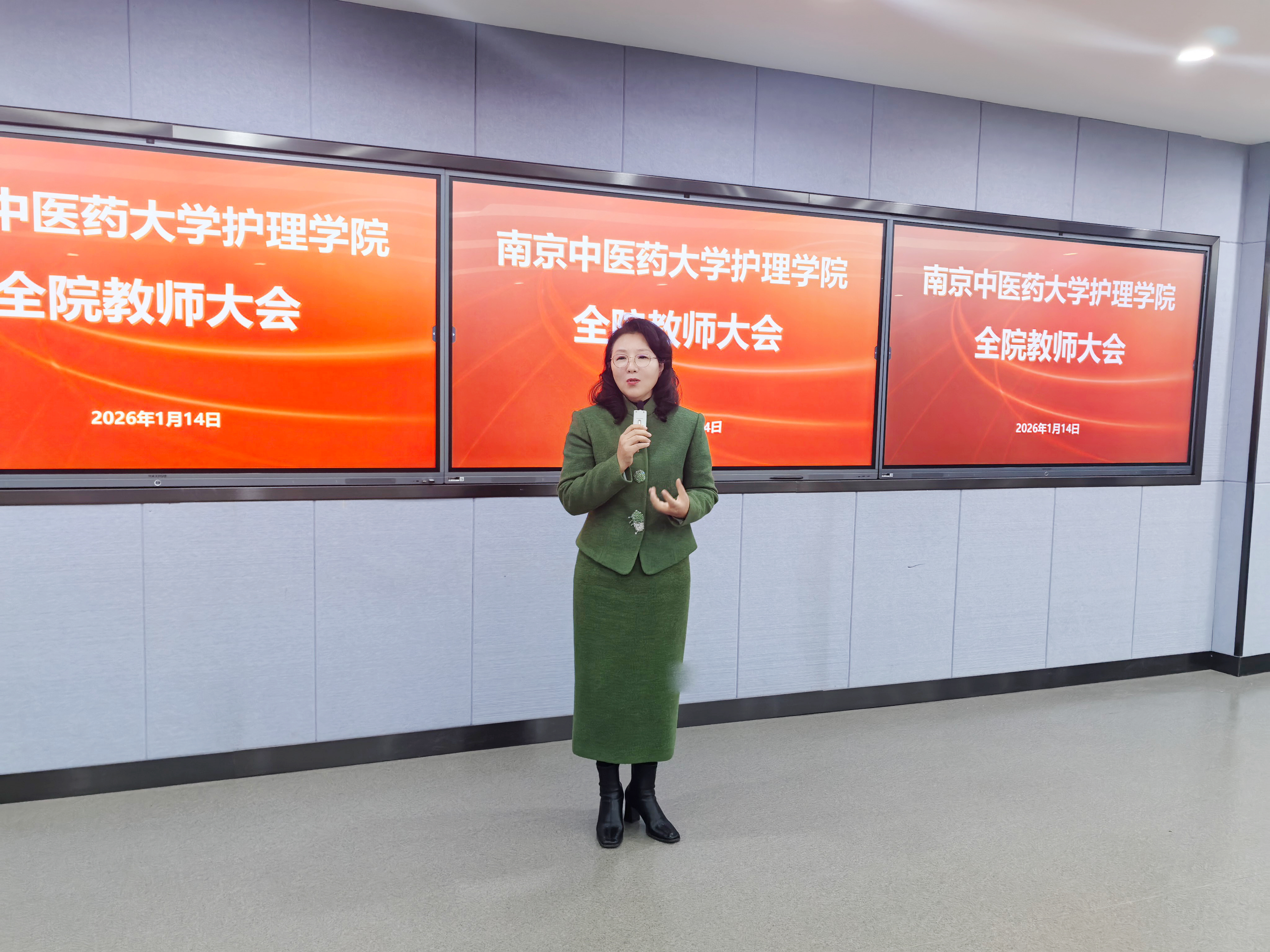 2026年1月14日上午,护理学院在B12-215教室召开学期末全院教师大会。全体院领导、学科带头人及教师参加会议。