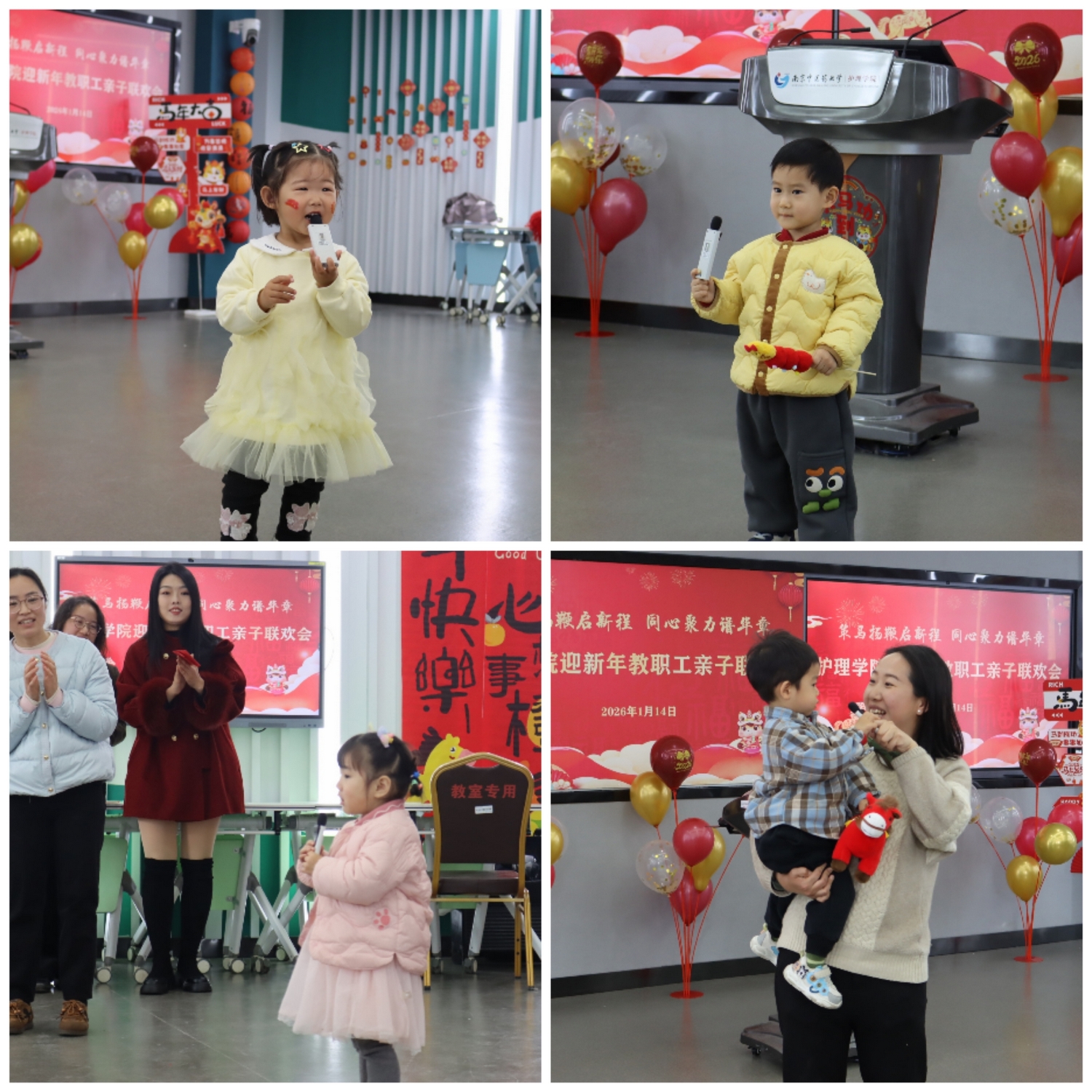 策马扬鞭启新程,同心聚力谱华章。2026年1月14日,护理学院分工会举办迎新年教职工亲子联欢活动,以新春拜年、才艺展演、包饺子等形式欢庆新年,活动现场洋溢着浓浓的年味与淳厚的亲情。